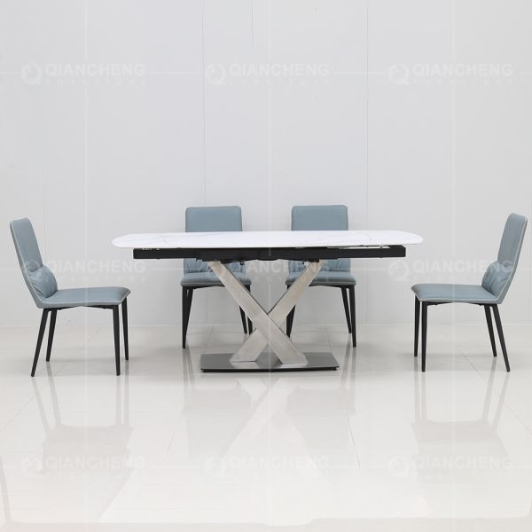 | Product name | Stainless Steel Leg Extension Marble Stone Top Dining Table With Chairs | ||